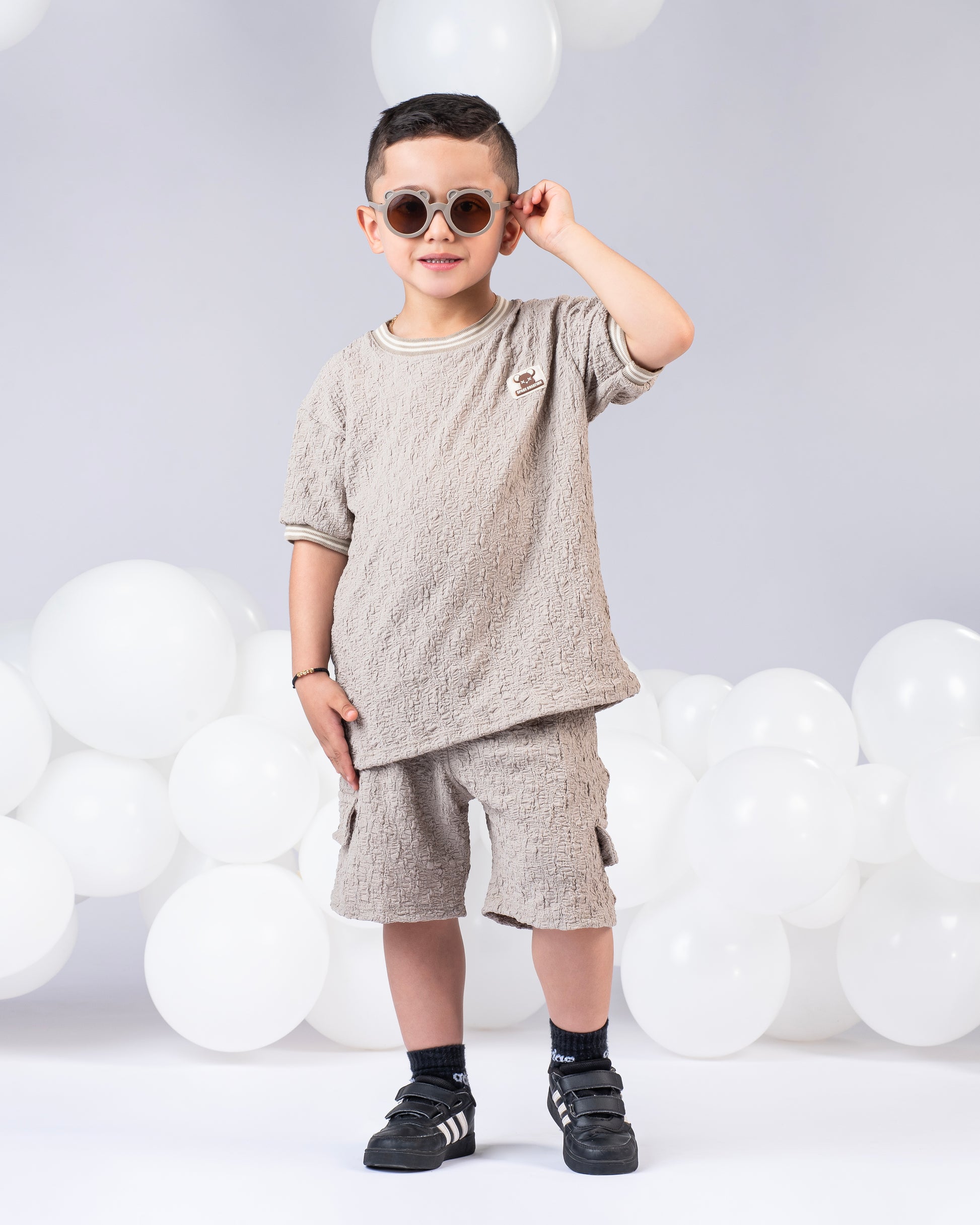 Conjunto infantil en tela texturizada , compuesto por camiseta oversize y bermuda con bolsillos laterales tipo cargo. Su diseño fresco y cómodo lo hace ideal para los días cálidos, mientras que el tono neutro aporta un estilo moderno y versátil,perfecto para combinar con tenis o sandalias y mantener a los peques con un look relajado pero con mucho estilo.